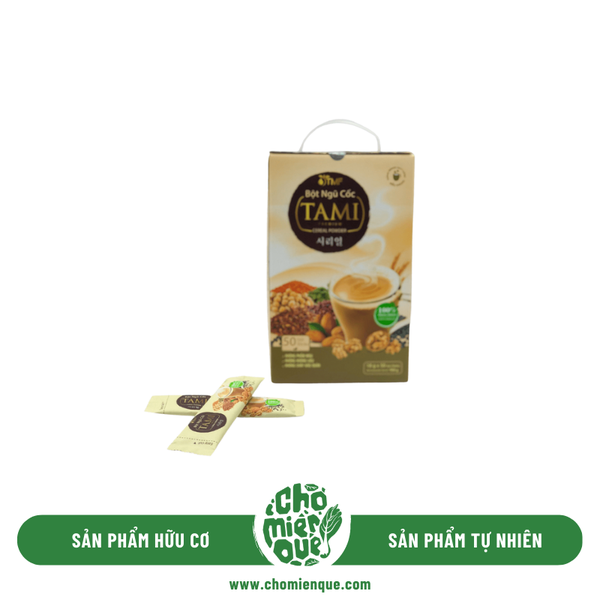 Bột ngũ cốc TAMI 900g (18 g x 50 gói) được sản xuất từ 100% tự nhiên, không sử dụng hóa chất, phẩm màu, hương liệu, chất bảo quản.