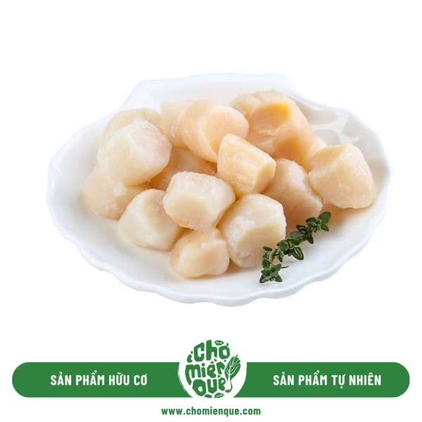 Sò điệp cồi sống có màu trắng ngà, vị ngọt thanh và kết cấu sợi mềm.